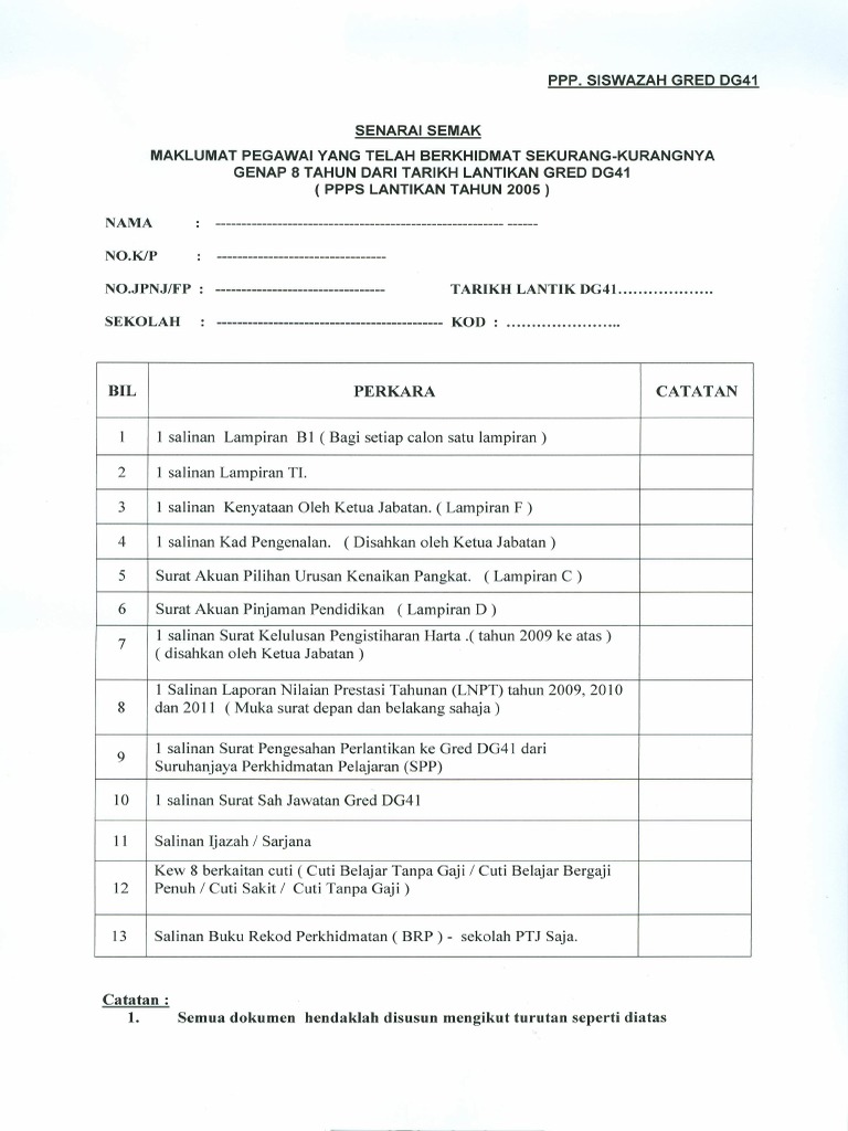 I semua salinan surat kenaikan pangkat ke gred dg44 dg48 dg52 dg54 yang dikeluarkan oleh lembaga kenaikan pangkat perkhidmatan pelajaran lkppp. Salinan surat tawaran kerja di majikan loe termasuk kontrak bertempoh mulai tahun pertama sehingga tamat.
