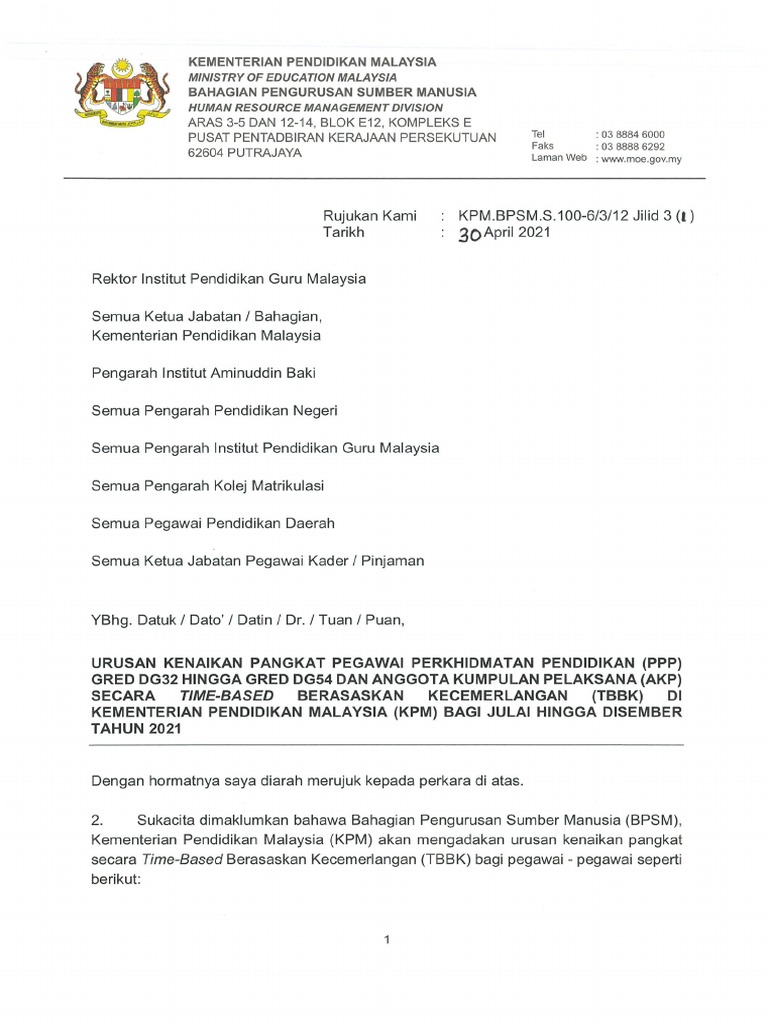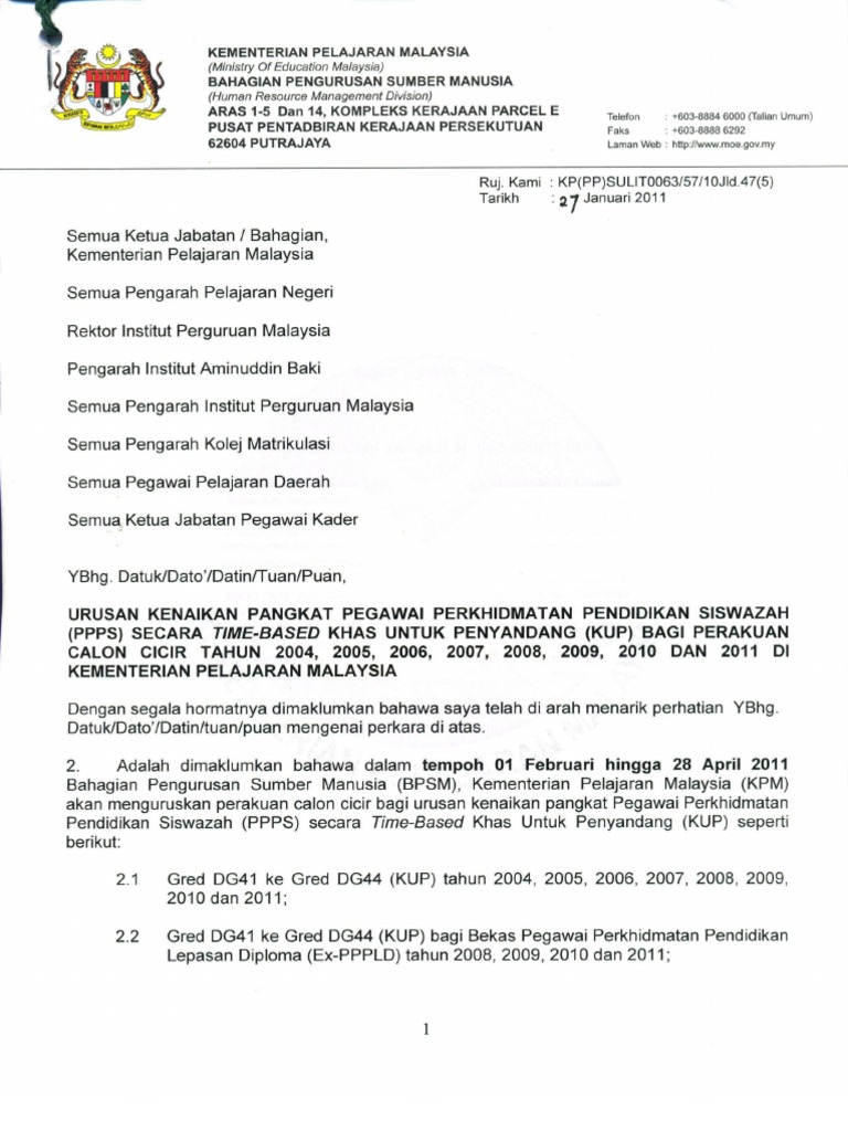 Surat Siaran Kenaikan Pangkat Pegawai Perkhidmatan Pendidikan Ppp Gred Dg44 Gred Dg48 Secara Time Based Berasaskan Kecemerlangan Tbbk Sk Sungai Embak